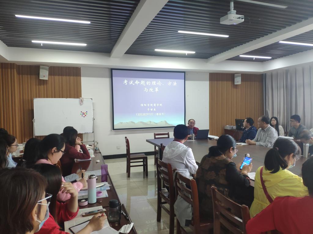 为了确保所有教师能科学编制试卷,提高试卷命题质量,于世良做了题为《考试命题的理论、方法和改革》的专题讲座。他结合自身多年教学经验分别从考试的概念、分类与功能;命题的因素、原则与方法;命题的改革及试卷分析等方面向大家详细讲述了试卷命题的编制要点。