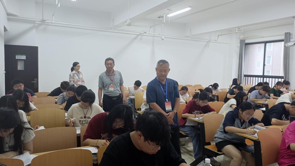 6月25日, 2022—2023学年第二学期期末考试的第一天考试工作正式开始。副校长王强在我院班子成员的陪同下,深入考场开展巡查工作。