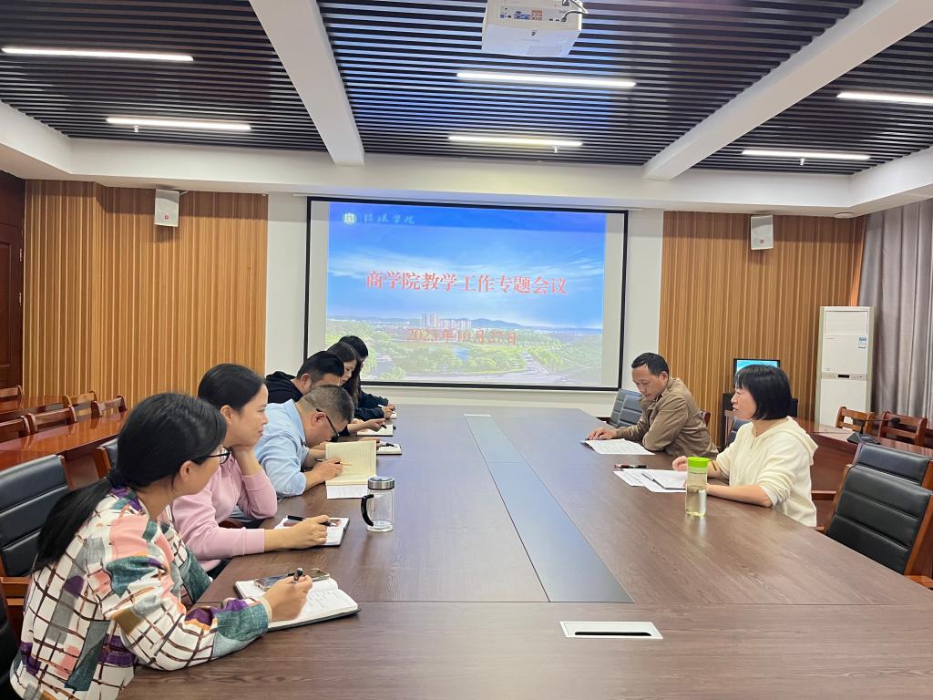 为进一步规范教学管理,提高教学质量,2023年10月27日,商学院在综合楼715会议室召开教学工作专题会议,商学院副院长吴新静、教学秘书盛大俊、各个教研室主任、教务员等参加了会议。会议由吴新静主持。