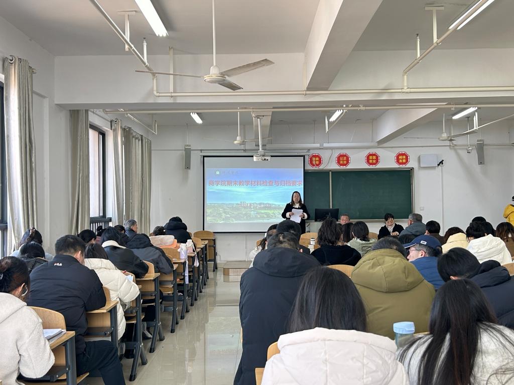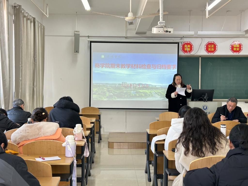为进一步加强教学管理,提高教学质量,确保教学工作的规范性和完整性,12月31日下午,商学院在综合楼608教室召开期末教学材料检查与归档要求培训会,商学院党总支部书记胡秀云、副院长李毓、吴新静和全体教师参加了会议。