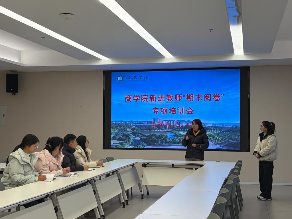 为帮助新进教师精准把握期末阅卷标准,规范阅卷流程,提升阅卷质量与效率,保障期末阅卷工作公平严谨,1月4日,商学院在教三楼530会议室召开新进教师期末阅卷专项培训会。商学院副院长吴新静、李霞影老师及新进教师王晓娅等参加培训会,会议由吴新静主持。