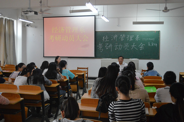 9月25日,经济管理系在社科楼511召开考研动员会。经济管理系主任王金献教授、信阳师范学院经济学院研究生秘书何凤等出席会议。