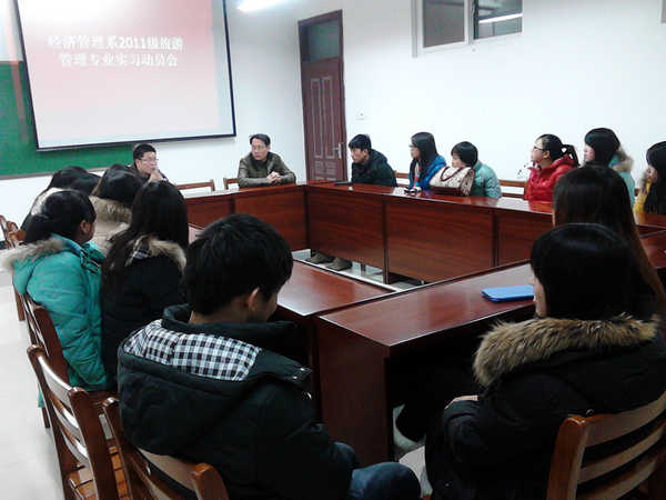 1月6日下午,经济管理系2011级旅游管理专业实习动员会在教四楼405会议室召开。系学工干事郑山峰,管理学教研室主任赵俊远参加会议。