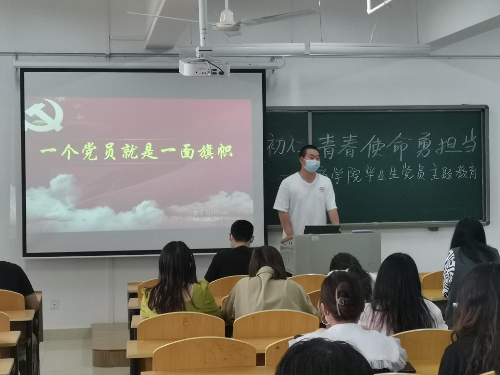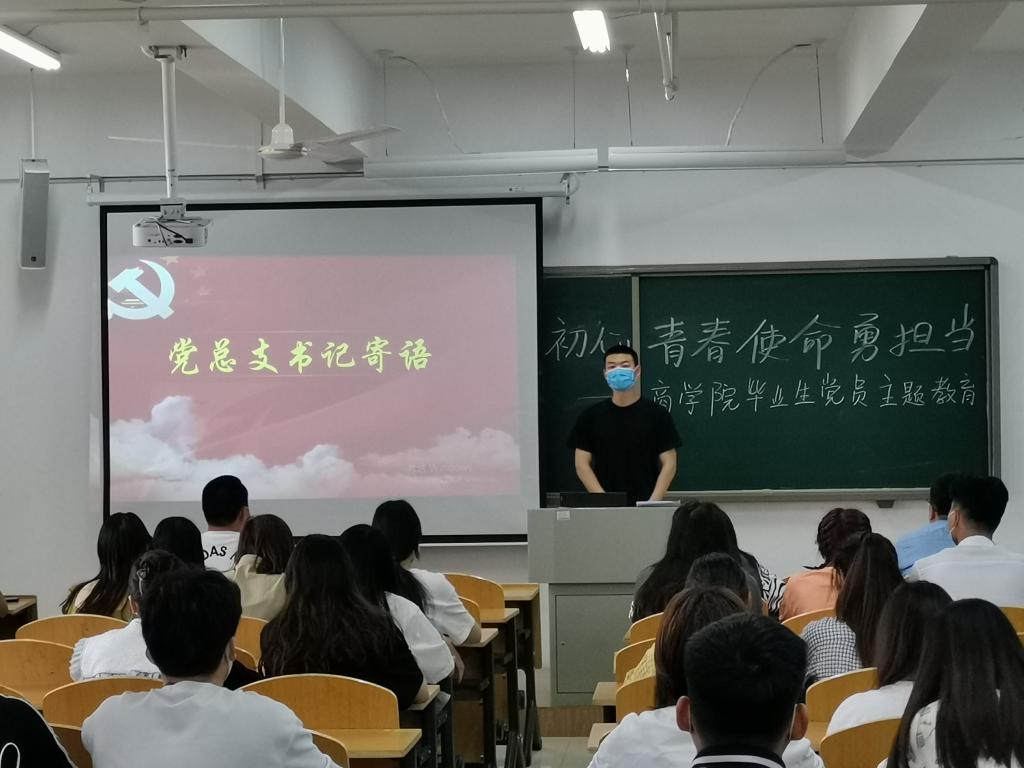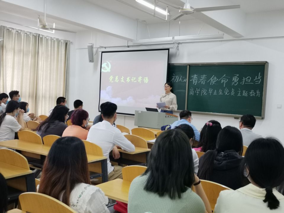 为贯彻落实习近平总书记关于加强基层党建的重要指示精神,进一步加强毕业生党员的党性教育,提升毕业生党员的党性修养。在毕业生离校之际,商学院党总支在715会议室组织开展了2022届毕业生党员主题教育,学院党总支书记胡秀云,组织委员黄伟,各学生支部书记、全体毕业生党员参加了教育活动。