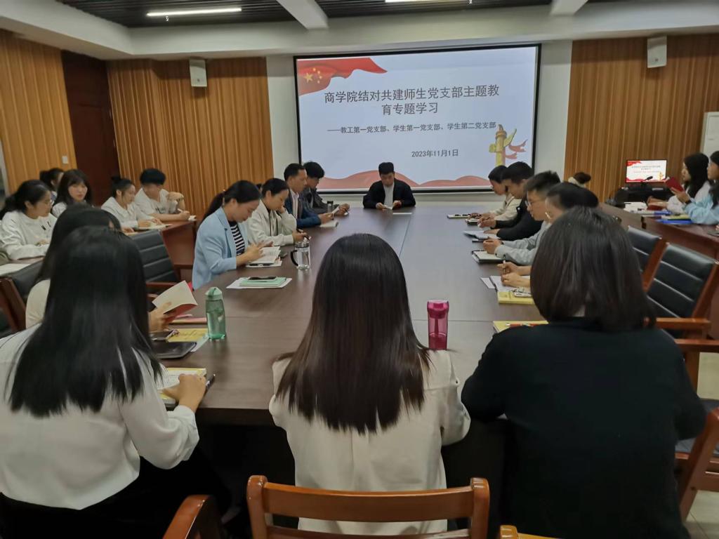 为进一步加强商学院基层党组织建设,提高商学院基层党组织的凝聚力、创造力和战斗力,加强师生党员之间的交流活动,根据《中共信阳学院委员会师生党支部结对共建行动实施方案》文件精神以及商学院党总支结对共建行动实施的具体要求,11月1日晚,商学院教工第一党支部与学生第一党支部、学生第二党支部进行支部联建、理论联学、活动联办等系列活动,以共建促党建、以共建促育人、以共建促管理、以共建促发展,提高教学效率、促进学生的全面发展。
