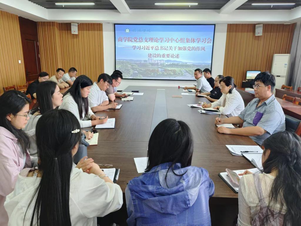 4月23日,商学院党总支理论学习中心组围绕“习近平总书记关于加强党的作风建设的重要论述”开展专题学习研讨活动。学院党政领导班子、各支部书记,全体辅导员参与此次学习。