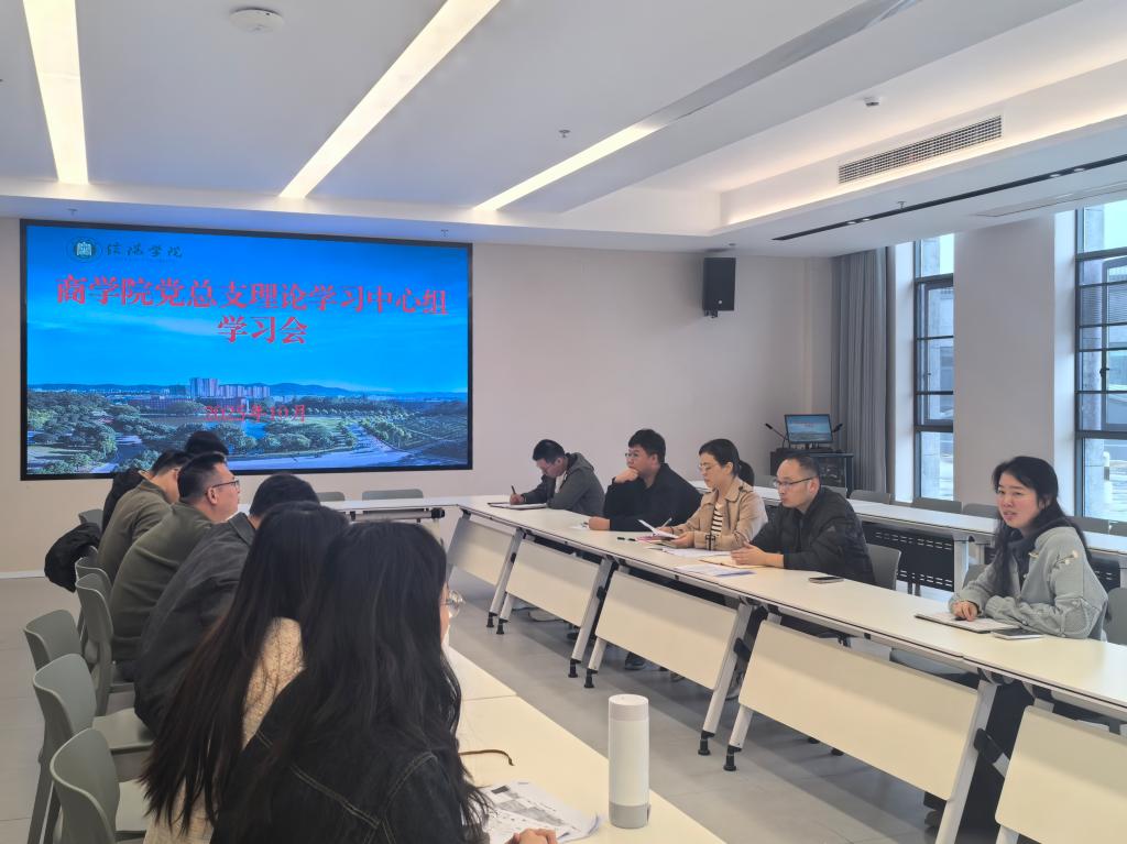10月17日上午,商学院党总支理论学习中心组在教三楼530会议室召开集体学习会。商学院党总支理论学习中心组成员参加会议,会议由党总支书记胡秀云主持。