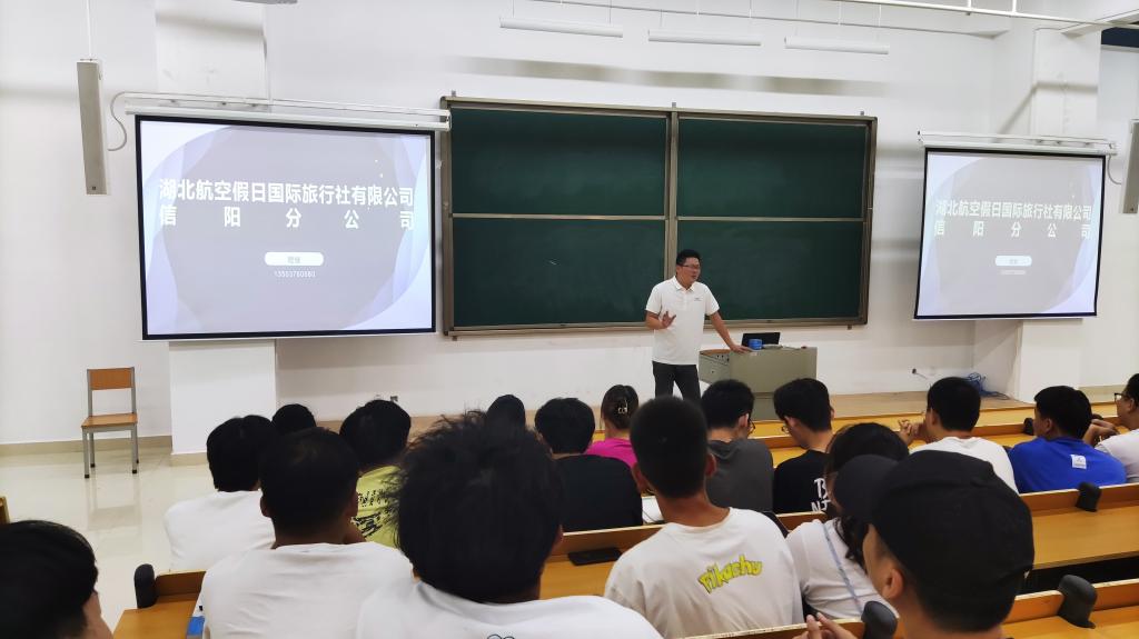 管理学教研室主任赵俊远,学院实习合作单位信阳大河旅行社负责人程继、信阳沃尔玛百货有限公司负责人杨芮、贝壳找房郑州分公司负责人陈家乐、润氏电子科技(信阳)有限公司负责人刘华蓉、携程旅行网华中服务联络中心负责人方钰萍参加此次动员会,教研室青年教师宋冠杰主持会议。