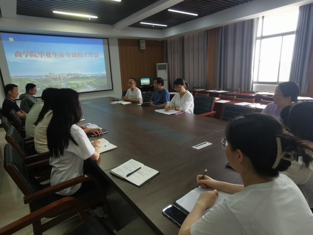 5月22日上午,商学院在综合楼715会议室召开毕业生安全离校工作会议,商学院院长刘玉来、书记胡秀云、学工秘书花端阳以及全体辅导员参加了此次会议。会议由花端阳主持。
