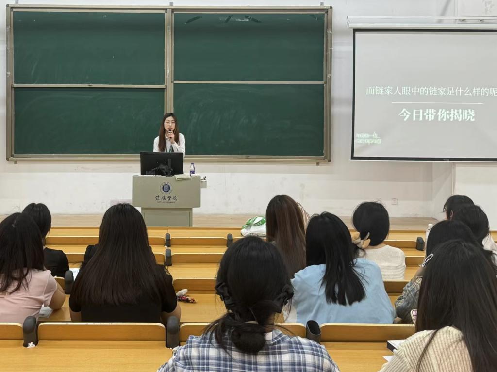 为拓宽毕业生就业渠道,精准对接优质岗位资源,4月26日下午,商学院在综合楼202教室召开上海链家专场宣讲会。我院2025届毕业生和2022级部分学生参加了此次宣讲会,2018级毕业生夏媛媛担任主讲人。