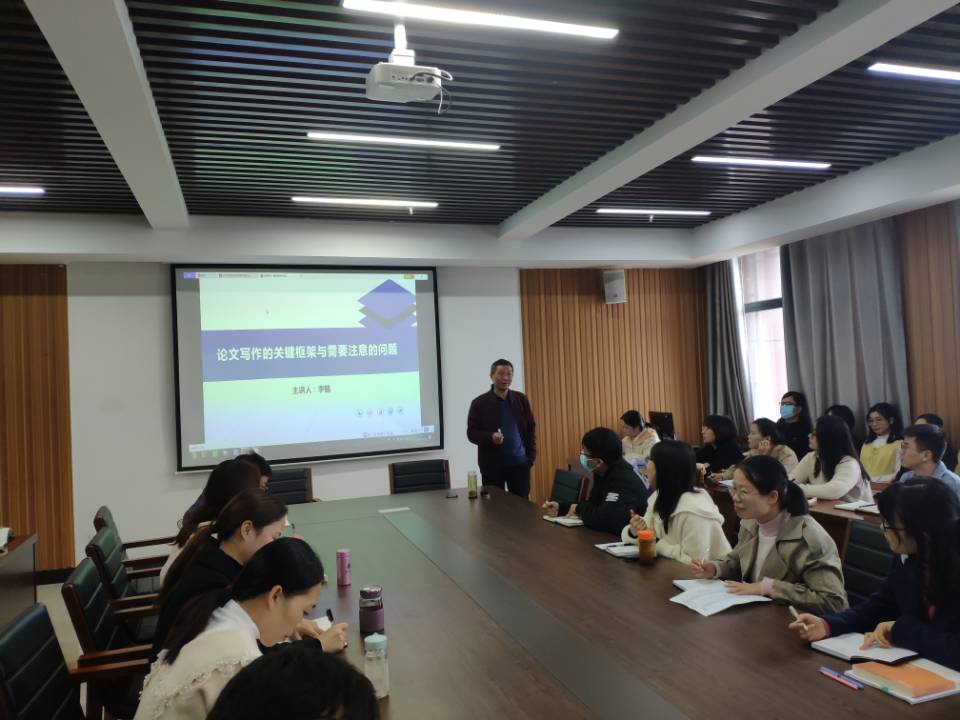 随后,他分别从两个方面进行细致的讲授:一是论文写作的七个框架,帮助青年教师理清学术论文的写作脉络,论文写作注重精简清晰;二是论文写作中存在的问题,提醒青年教师避开论文写作的误区,抓住论文写作的要点,紧扣中心。