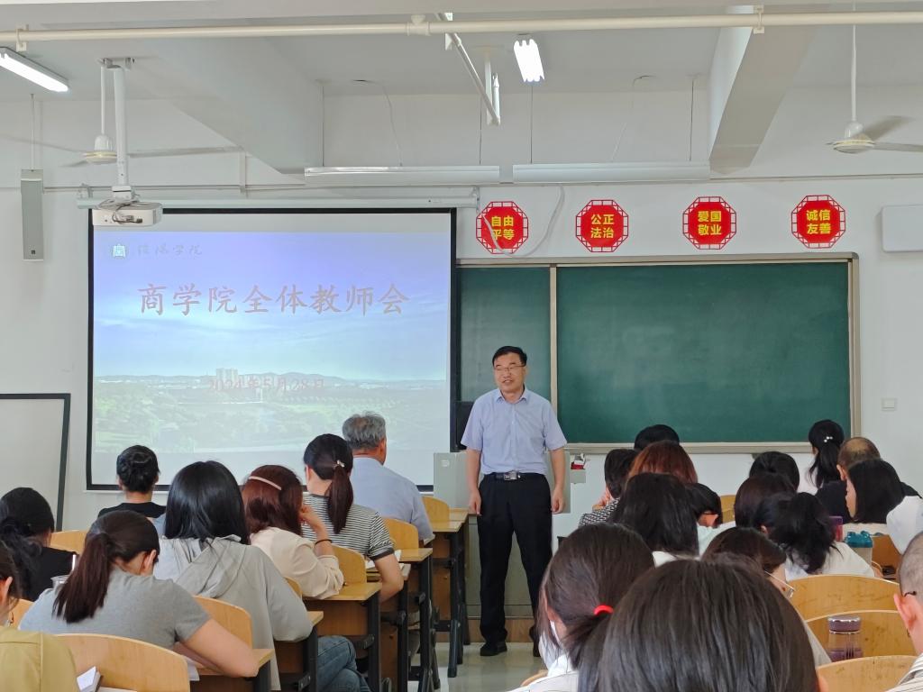 为进一步优化科研管理,强化2024届毕业生离校保障工作,2024年5月28日,商学院于综合楼608召开全体教师工作会议。会议由刘玉来院长主持。