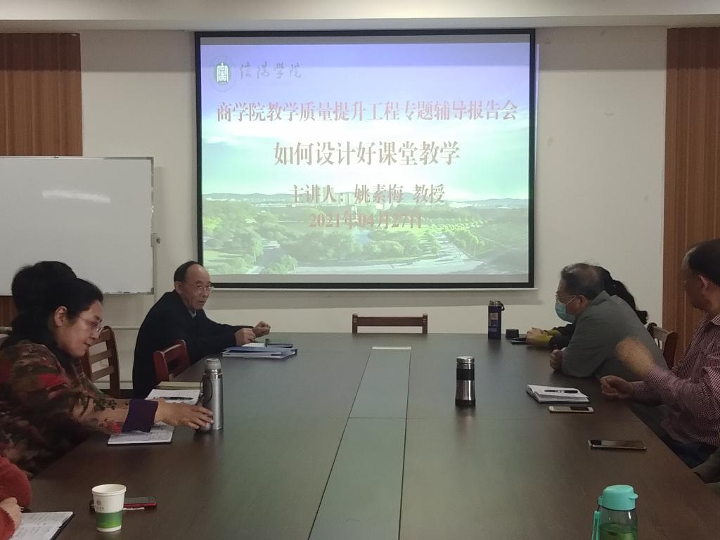 于世良院长在总结中,高度赞扬了姚素梅教授的报告,并指出,姚教授此次的专题讲座是商学院教学质量提升的重要一环,对参会教师做好课堂教学设计具有重要的参考价值和借鉴意义。希望全院教师落实学院要求,提高工作效率,以高水平的教学质量迎接本科教学评估。与会教师纷纷表示收获颇丰,在以后课程设计中一定要认真学习,提升课堂教学质量。