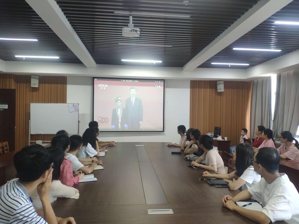 6月29日上午,商学院党总支书记胡秀云和全体教师在综合楼715会议室集体观看了中国共产党“七一勋章”颁授仪式现场直播。