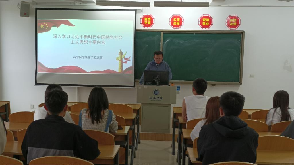 为深入贯彻落实学校关于学习贯彻习近平新时代中国特色社会主义思想主题教育工作要求,进一步推进学院主题教育工作走深、做实,在师生党员中掀起学习热潮,努力在以学铸魂、以学增智、以学正风、以学促干方面取得实实在在的成效。5月8日-16日,商学院党总支各党支部先后组织召开支部书记讲党课活动,商学院全体师生党员分批参加了活动。
