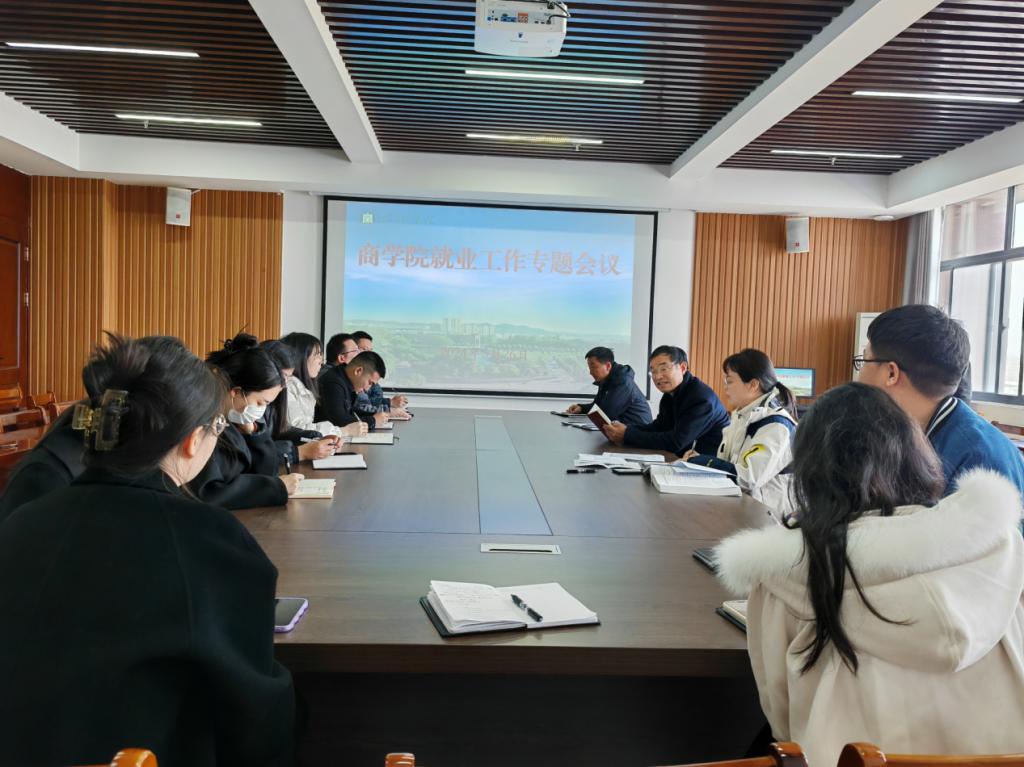 为深入贯彻落实我校2024届毕业生就业创业工作会议精神,扎实推动毕业生高质量就业,3月25日上午,商学院在综合楼715会议室召开就业工作专题会议,商学院院长刘玉来、党总支书记胡秀云、学工负责人花端阳以及全体辅导员参加了此次会议。会议由学工负责人花端阳主持。