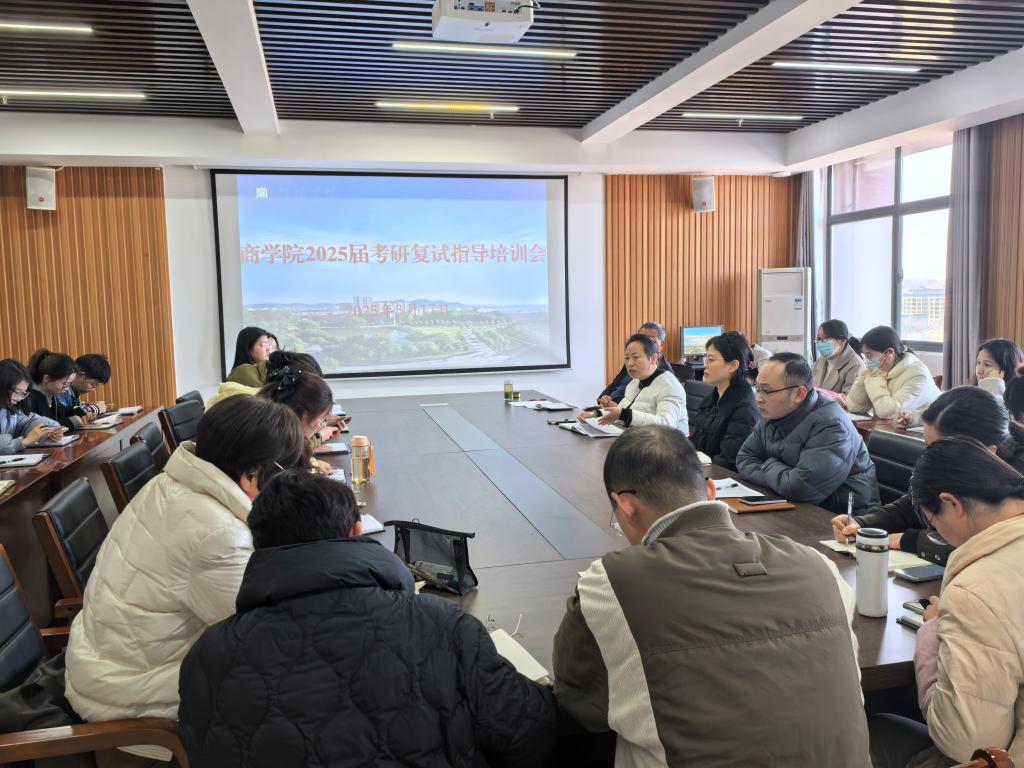 为扎实推进考研指导工作,助力学子实现深造梦想,商学院于3月17日在715会议室召开2025届毕业生考研复试指导培训会。学院领导班子、考研指导老师参加了会议。会议由副院长吴新静主持。
