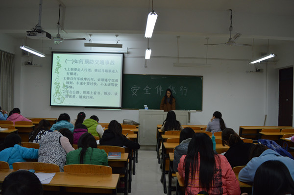 会上,王艺铮以多媒体为媒介,结合实例,分别从火灾、交通安全、盗窃和诈骗等几个方面进行详细解说,细致介绍校内让经常存在的各种安全隐患提醒同学们要加强防范意识,注意保护个人信息,学会处理一些简单的安全事故。