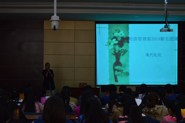 10月27日,经济管理系在图书馆学术报告厅召开新生团课暨学生干部培训会。由经济管理系辅导员余婷婷主讲。