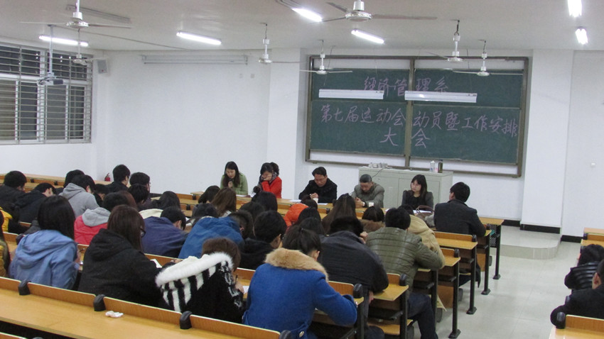 3月11日晚,经济管理系在教五106教室召开第七届运动会动员暨工作安排大会。系主任孟广章、系秘书、辅导员、各班班干及学生会骨干参加了本次动员会,会议由郑山峰主持。