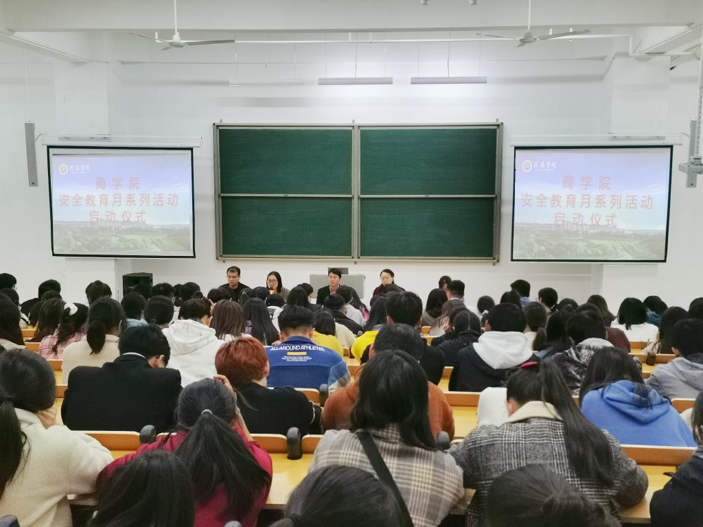 11月6日,商学院在综合楼203教室举行2020年安全教育月系列活动启动仪式。商学院党总书记张富庄,学工秘书董高丽,团总支书记盛士蔚,辅导员封宇、秦宁以及2018级、2019级、2020级主要学生干部和寝室长参加了会议。会议由盛士蔚主持。