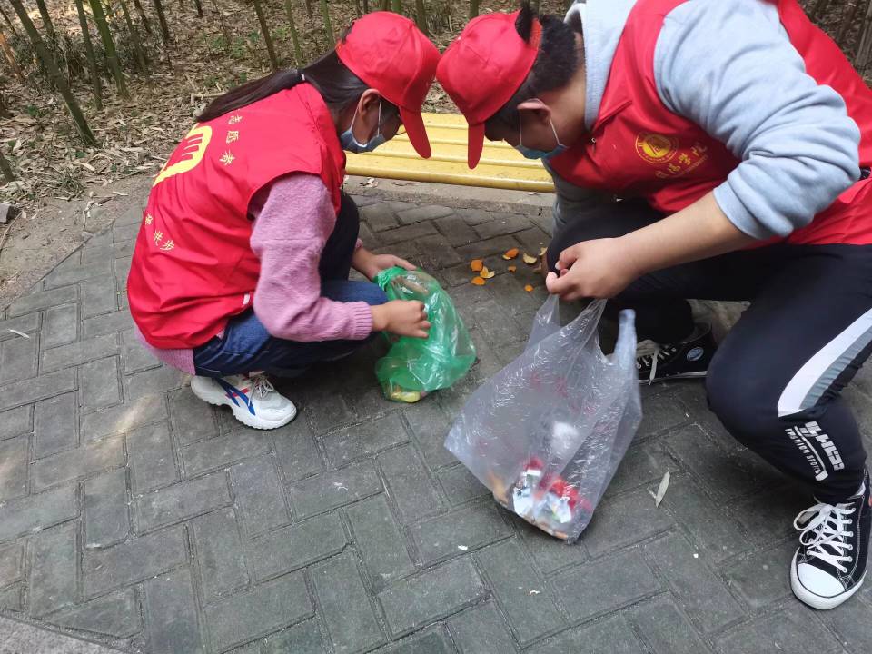 来到浉河公园,志愿者们迅速分组,纷纷拿出了垃圾袋,开始清扫园中的垃圾。隐藏在树叶下的包装纸、路边的草丛里藏着的垃圾、休闲区公园长椅下零散的食品袋、散落的废纸和废弃饮料瓶,都被一一收入垃圾袋内。活动期间,志愿者们互帮互助,尽管过程很辛苦,但是志愿者们仍保持着积极乐观的态度。经过志愿者们三个小时的努力,浉河公园的面貌焕然一新。活动最后,商学院志愿服务队成员合影留念为此次活动画上圆满句号。