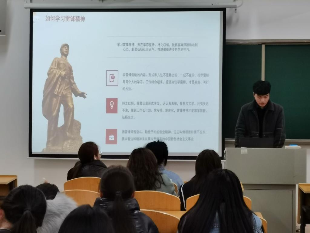 为了让广大青年学生深入学习雷锋精神,倡导校园文明新风,3月11日晚,商学院组织部与商学院20级各班团支书组织于20级各班自习教室共同举行了“学习雷锋精神,争作时代榜样”雷锋月团课活动。