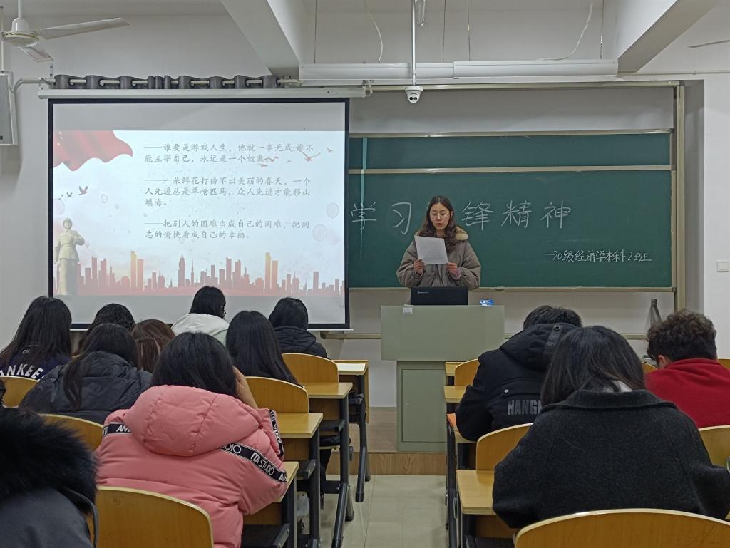 本次团课活动以各班团支书组织本班级同学进行演讲和观看弘扬雷锋精神的视频的方式展开。通过观看视频,同学们更加充分的了解了雷锋同志的事迹,同时,同学们也更加理解了雷锋精神的内涵。观看视频结束后,20级经济学本科三班冯英如、20级会计学本科五班刘晨怡等同学在各自班级踊跃发言,纷纷走上讲台分享自己心中的雷锋和雷锋精神。
