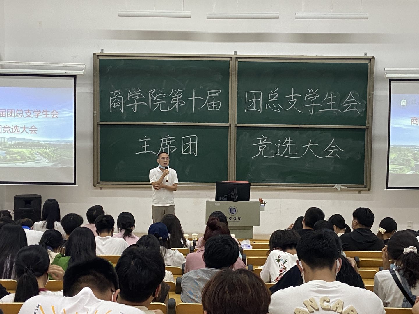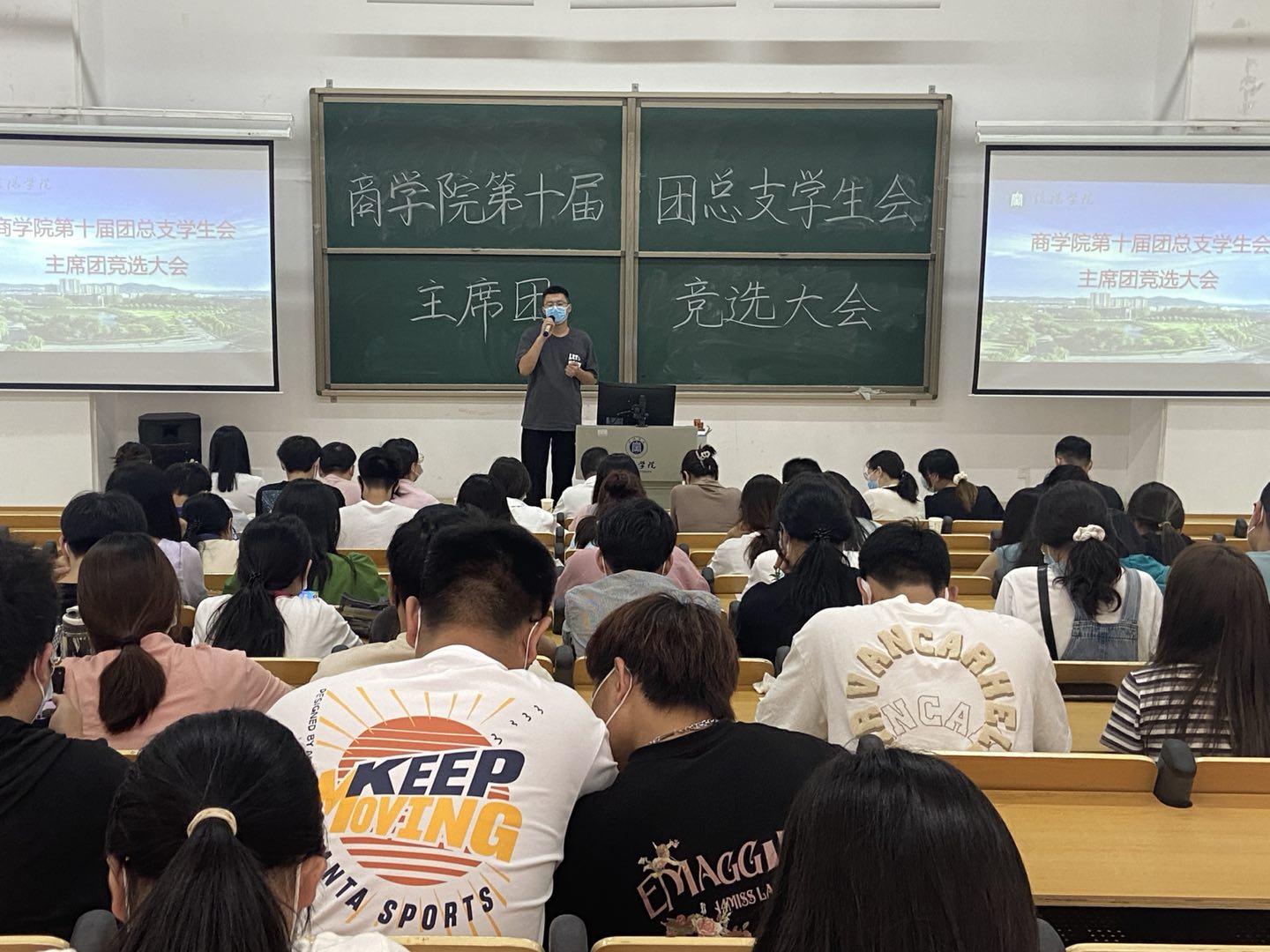 9月15日中午,商学院在综合楼202教室举办第十届团总支学生会主席团成员竞选大会。参加此次会议的有学工负责人花端阳,团总支书记乔梁,全体辅导员老师,全体学生干部。会议由乔梁主持。