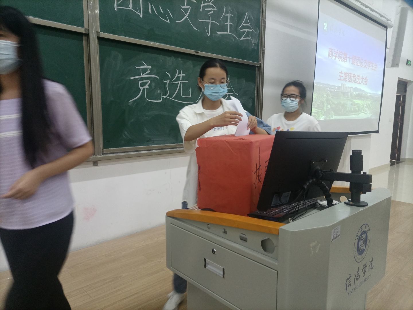 演讲完毕后本着公平、公正、民主的原则,由评委老师、学生会主席团及全体学生干部进行不记名投票。