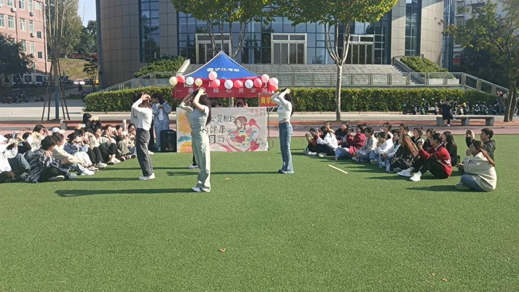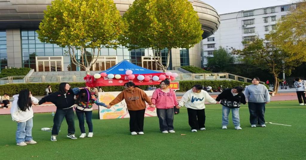 10月20日下午,商学院组织学生在西区操场开展了以“与心灵相约,与健康同行”为主题的“心灵派对”系列活动。通过开展“多人多足”“背后投球”“驿站传书”等各种不同类型游戏,帮助同学们释放了压力,在欢笑中收获了友谊,增进了感情。