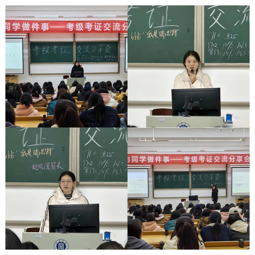 为进一步推进学风建设,提高我院学子考级考证的热情,增强学生信心,帮助学生解决考级考证过程中遇到的各种问题,商学院于11月28日在综合楼203举办了“我为同学做件事”考级考证经验交流会”。优秀学生代表凌孟娟、张世艺、李鑫、王明雨、马伊琍,22、23级部分学生参加了此次分享会。