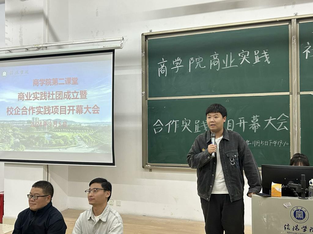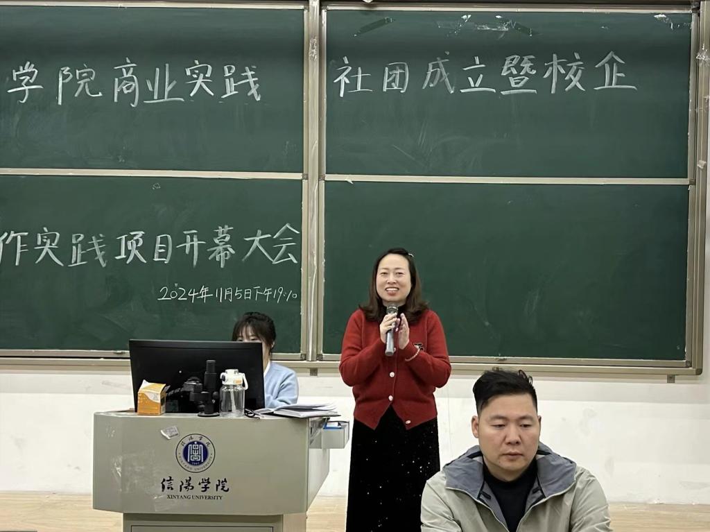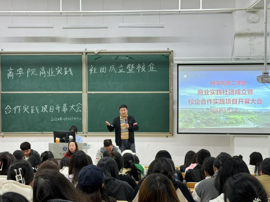 企业代表王新发表讲话,用当今时代就业的严峻形势点明了商业实践社团与校企合作实践项目开展的必要性。他表示,将通过校企合作培养学生,依据学生特点和风格分组,最大程度展现学生个人能力。同时,他希望大家能够积极参与,共同探索校企合作的新模式,为未来的就业和创业筑牢根基。