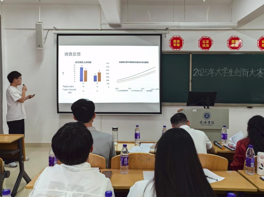 自大赛启动以来,全院学子积极响应,经过前期层层严格筛选,八个优质项目从众多参赛作品中脱颖而出,成功晋级学院复赛。赛事采用“项目路演+专业答辩”双环节模式,为参赛团队搭建了一个全方位展示创新成果的舞台。