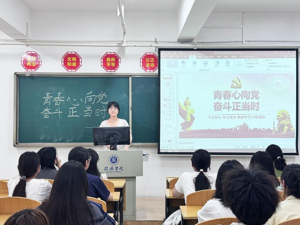 为进一步加强学院共青团员队伍建设,提升入团积极分子政治素养与责任意识,5月16日,商学院在综合楼409教室举办“青春心向党,奋斗正当时”主题团课。本次团课由商学院辅导员李欣主讲,43名入团积极分子参加。