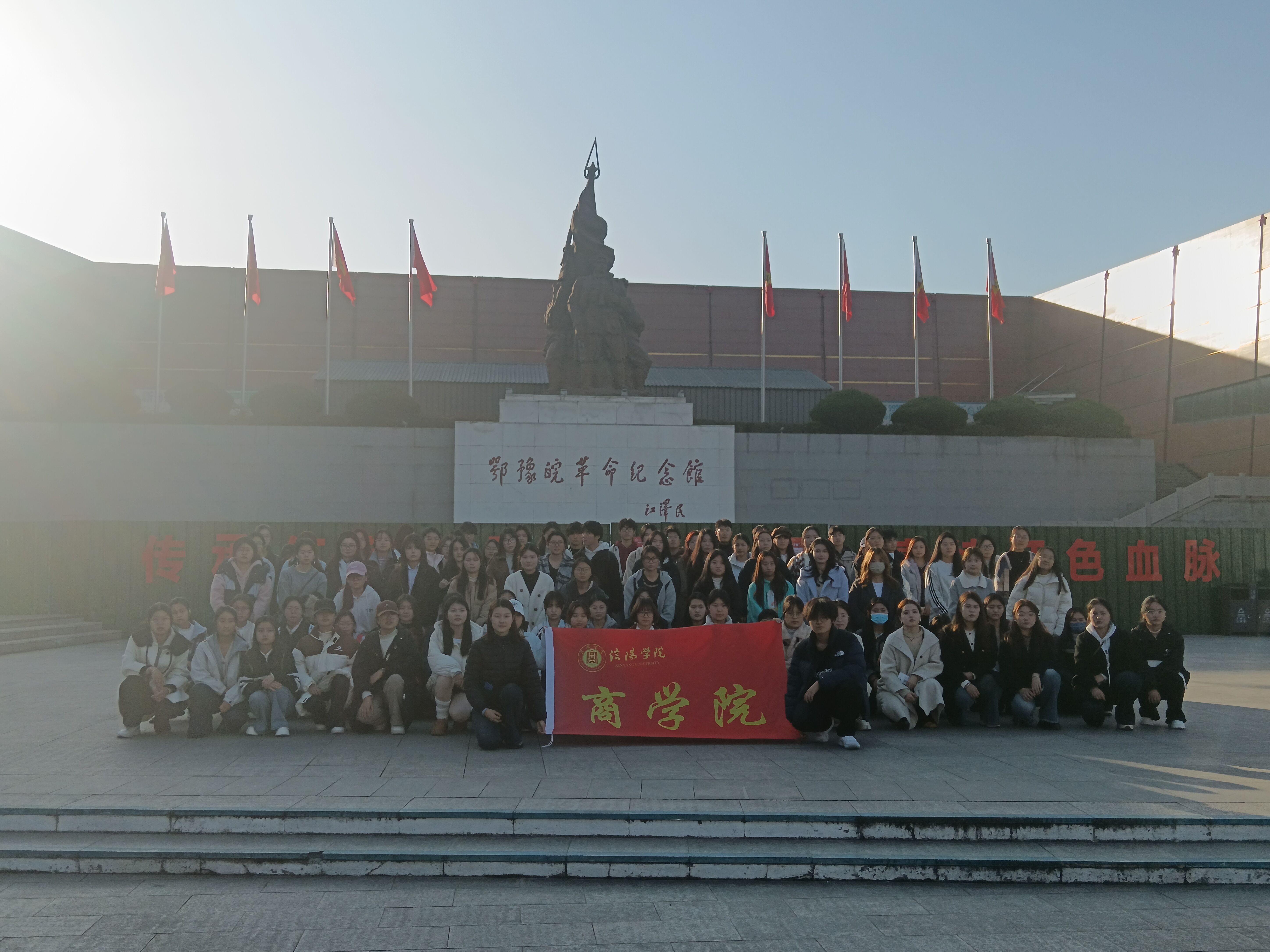 为厚植青年学子红色情怀,传承革命精神,引导新生团员从红色历史中汲取奋进力量,12月5日,商学院团总支组织2025级全体新生团员赴信阳市鄂豫皖革命纪念馆开展“追寻红色足迹,激扬青春力量”主题团日活动。此次沉浸式红色教育实践历时两小时,为2025级新生团校培训画上了圆满句号。