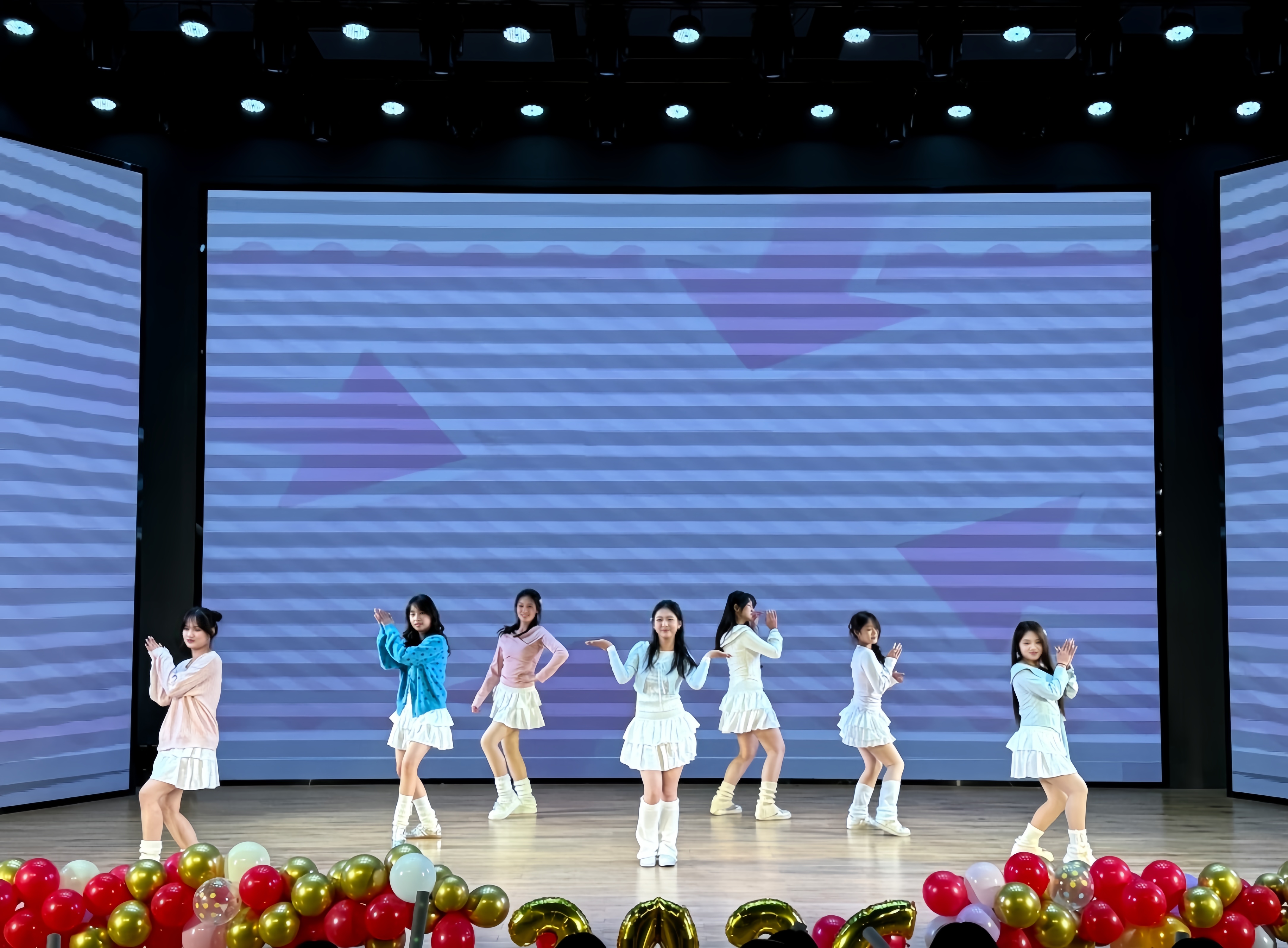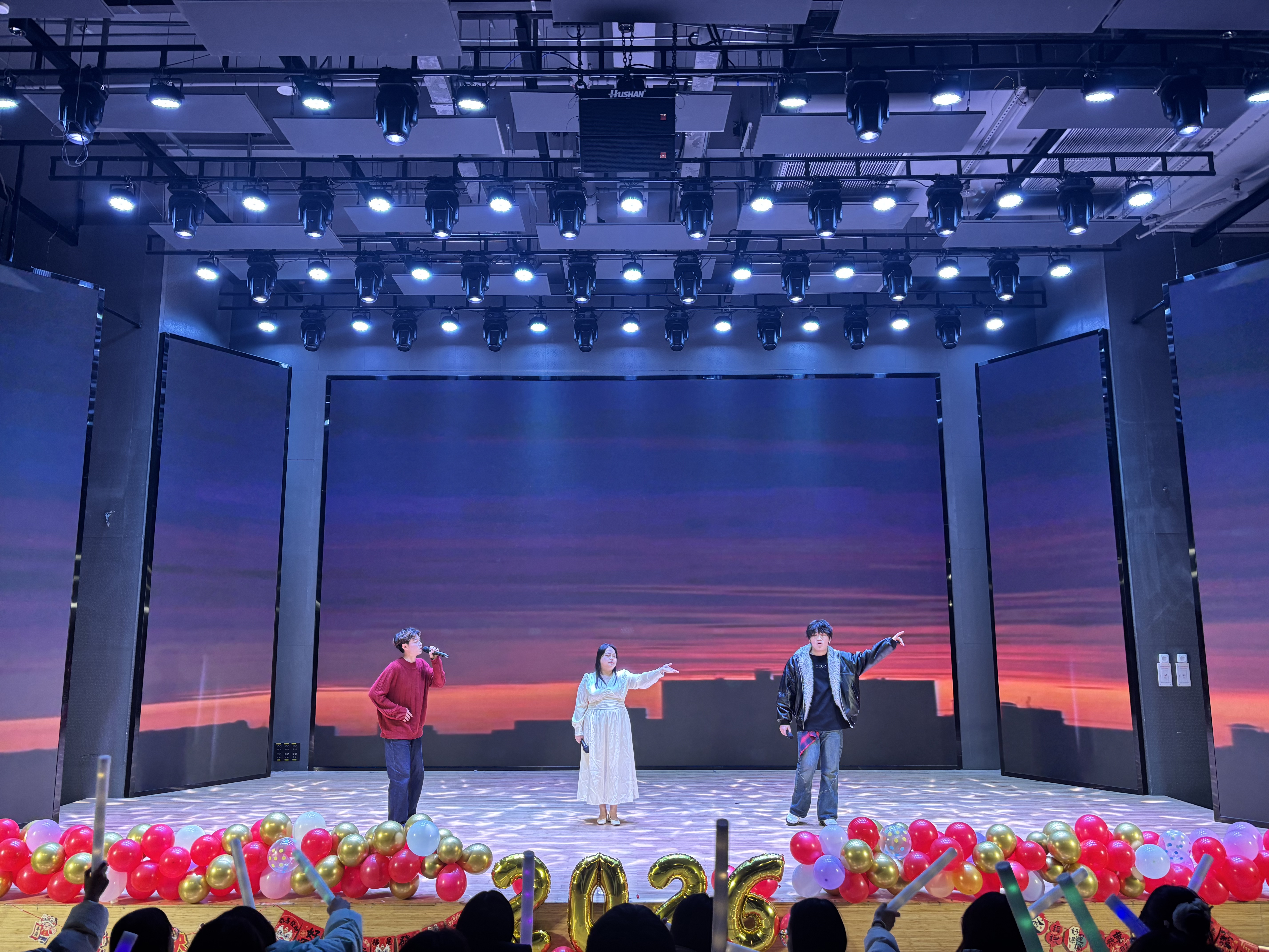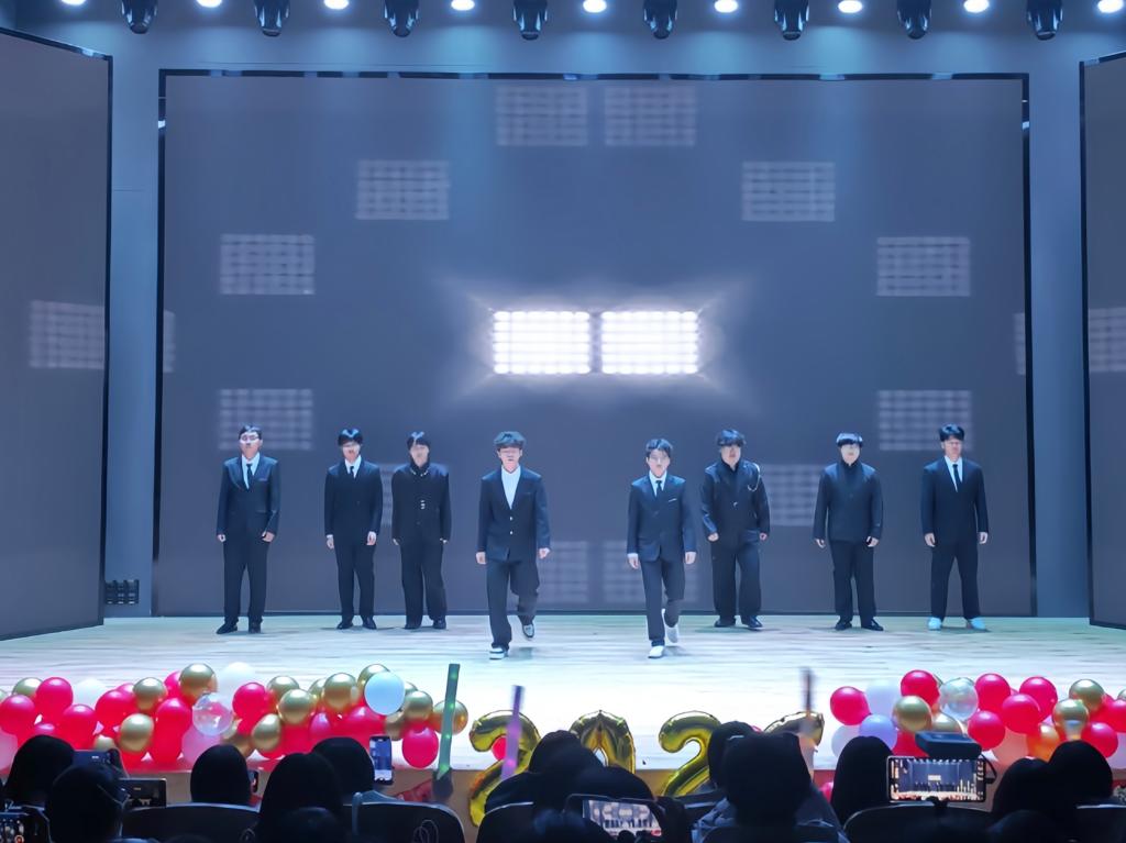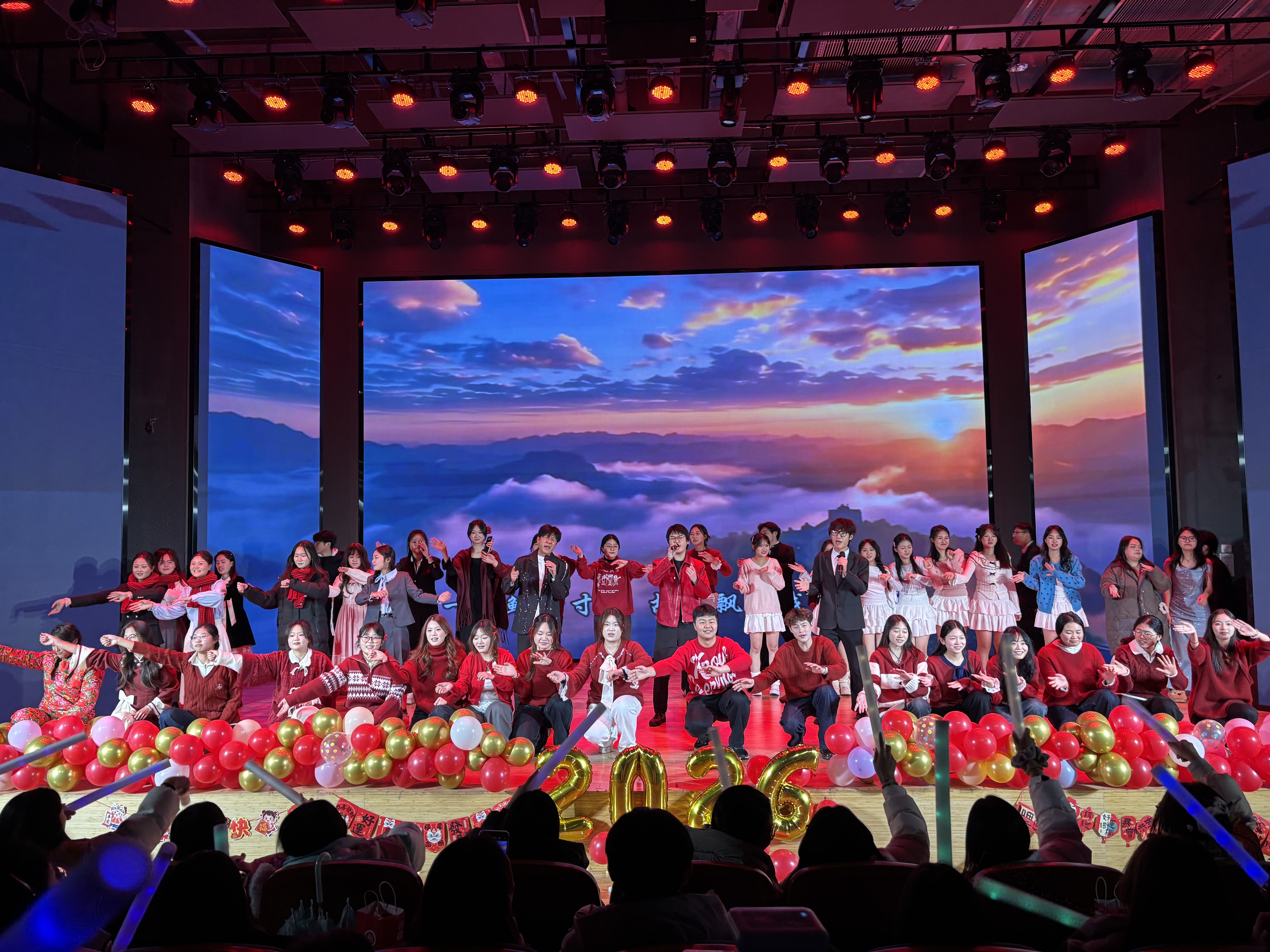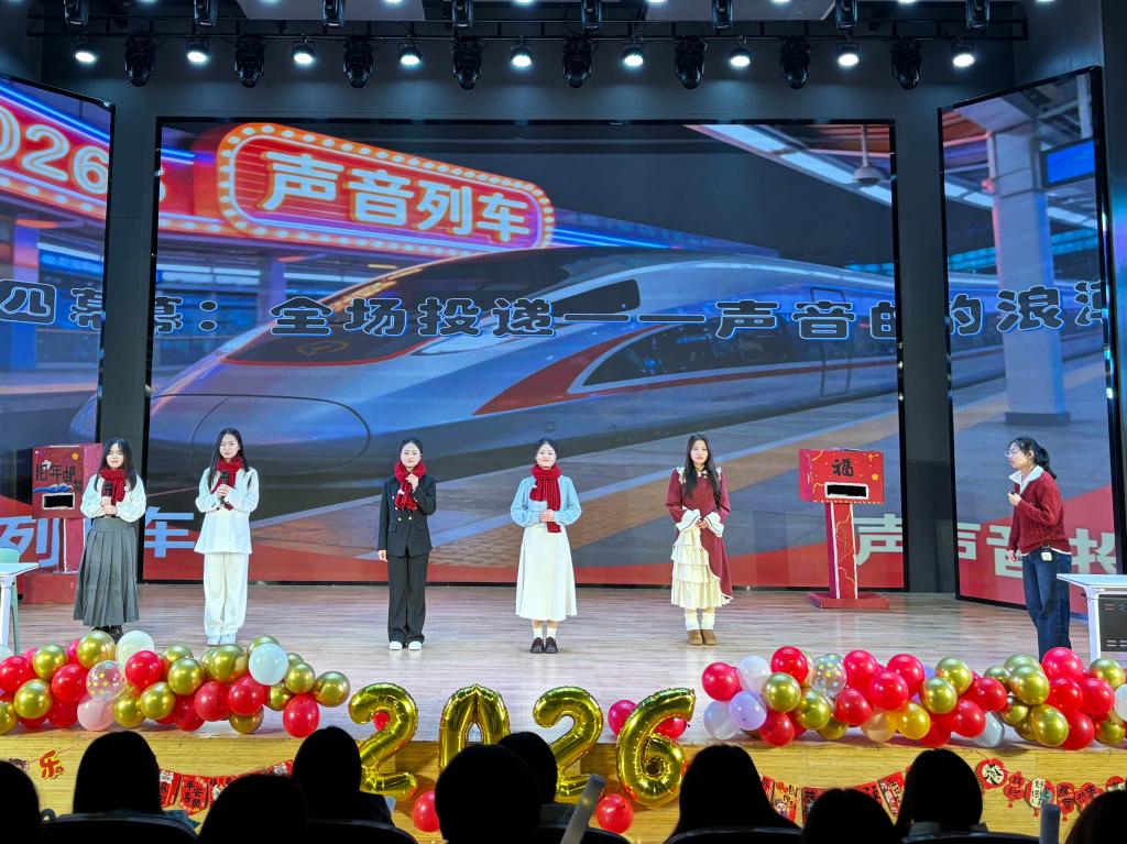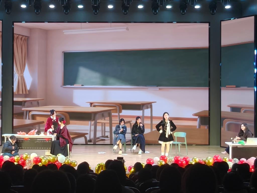 下篇“启航·未来的号角”以集体节目凝聚奋进力量。群舞《gee》节奏明快、舞步灵动,用活力与热情点燃全场;集体走秀环节中,学子们踏着铿锵利落的脚步,在光影交错中展现出迈向未来的自信姿态。晚会中途穿插的抽奖互动环节,更是将现场气氛推向高潮,惊喜不断的礼品与阵阵欢呼声,让节日的喜庆氛围愈发浓厚。最后,晚会在歌曲《天龙地鳞》激昂的旋律中圆满落下帷幕,激昂的歌声承载着对新年的美好期许,久久回荡在报告厅内。