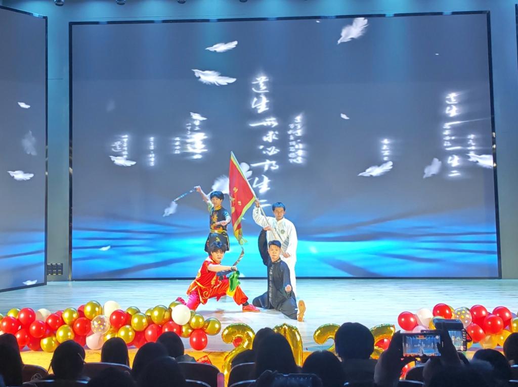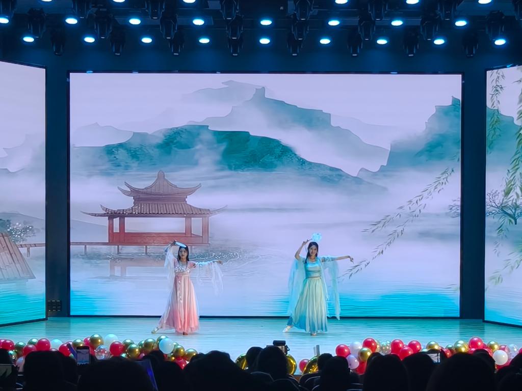 中篇“国韵·文化的回响”巧妙融合传统与现代,尽显文化魅力。舞蹈《画中游》舞姿翩跹,将古典艺术的柔美雅致展现得淋漓尽致;武术表演刚劲有力,将传统武术的磅礴气势与少年意气完美融合,赢得阵阵喝彩;歌曲《罗生门》以温柔细腻的嗓音诉说深情,余韵悠长;拉丁舞《茶香乐》则创新性地将曼妙舞姿与传统茶文化相结合,舞姿灵动、茶香意蕴,展现出别具一格的跨界艺术魅力。