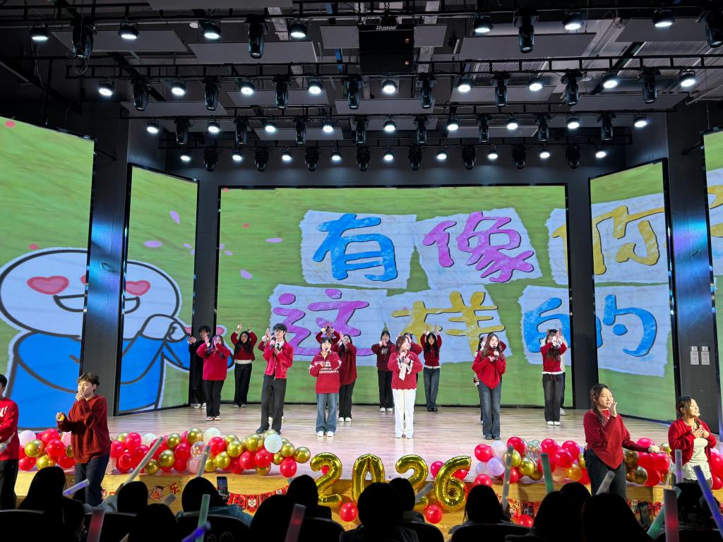 上篇“青春·光阴的故事”聚焦校园日常,唤醒青春记忆。情景剧《新年声音邮局》凭借细腻生动的表演,将新年的欢闹气息与同窗情谊娓娓道来;歌曲《第一天》歌声嘹亮、活力四射,尽显青年学子的蓬勃朝气;小品《谁杀死了周日》以幽默诙谐的桥段复刻校园日常,在引得全场欢笑的同时,也引发了学子对时光珍惜与规划的思考;歌曲《勇气》则以真挚饱满的唱腔,诠释了少年逐梦路上的热忱与坚定。