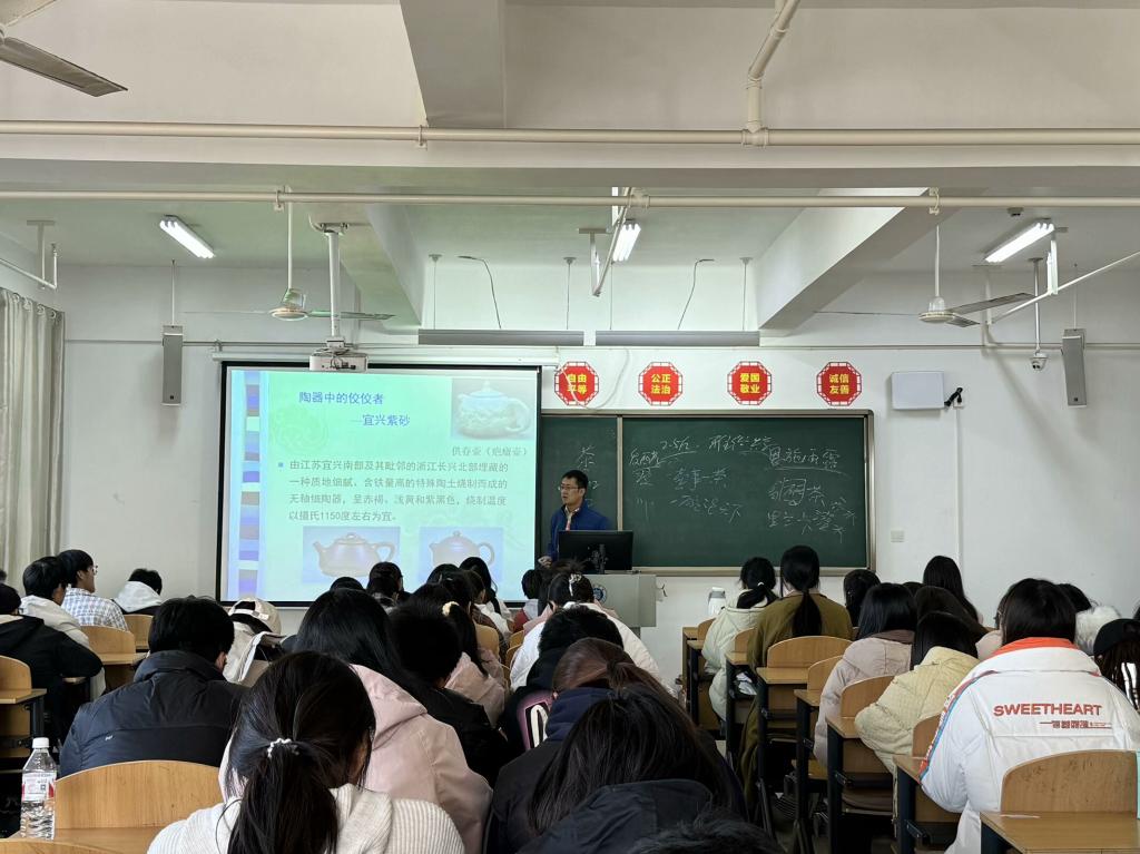 为丰富大学生茶文化知识,使青年学生传承和弘扬中华优秀传统文化,11月30日下午,商学院茶文化协会在综合楼608教室开展2024—2025学年茶艺集中授课。本次授课特邀茶艺指导老师田冲担任主讲,茶文化协会成员出席此次活动。