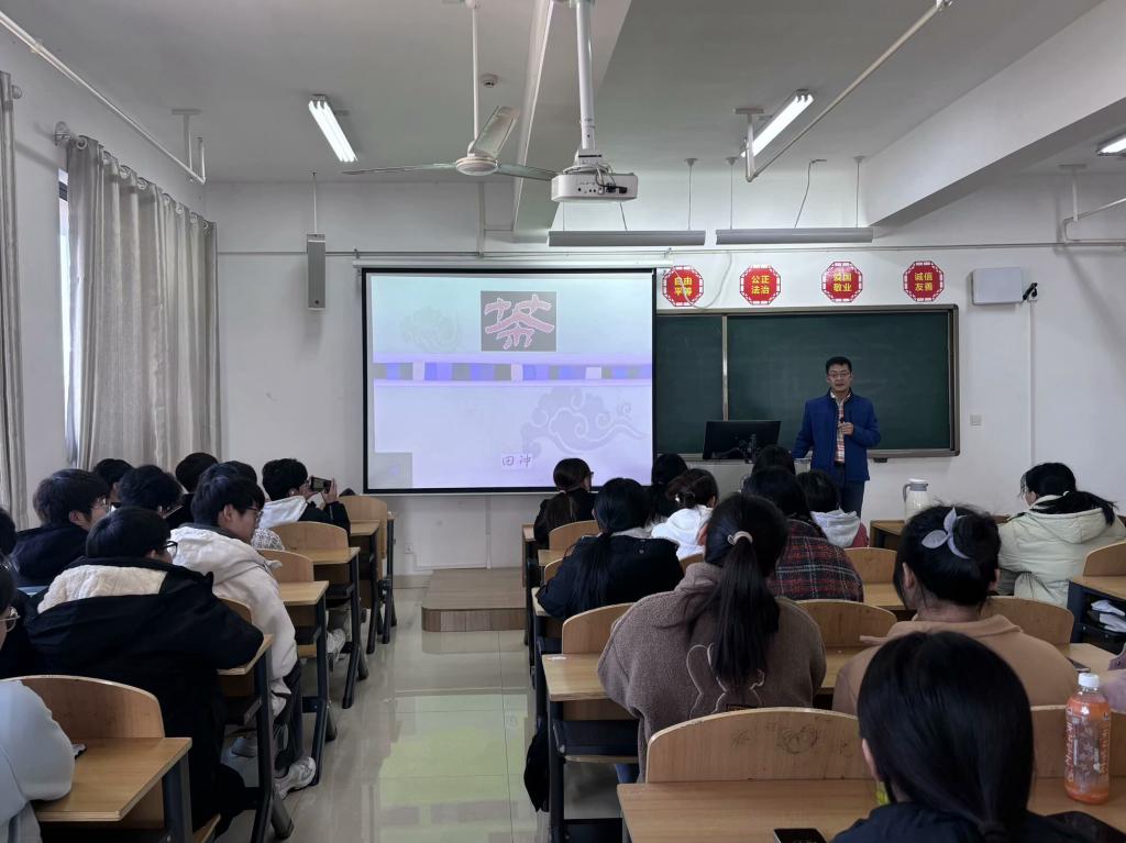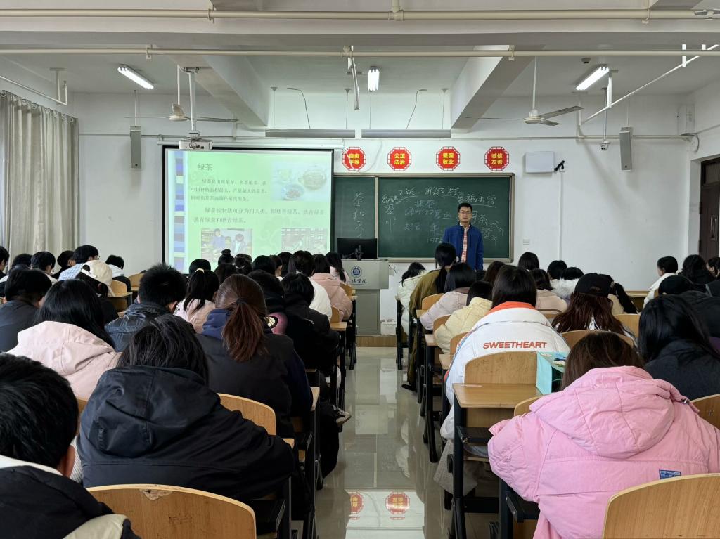 活动现场,田冲老师首先从茶的起源开始,讲述中国茶文化源远流长的发展历史。随后,结合信阳地区的实际情况,田老师详细阐述了信阳本地茶叶的多样品种,并对信阳本地茶叶的外形、口感、色泽等特征进行了细致讲解。最后,在田老师的悉心指导下,通过互动环节的辨认茶叶,同学们对茶叶有了更清晰的认知,提高了对不同种类茶叶的辨识能力。