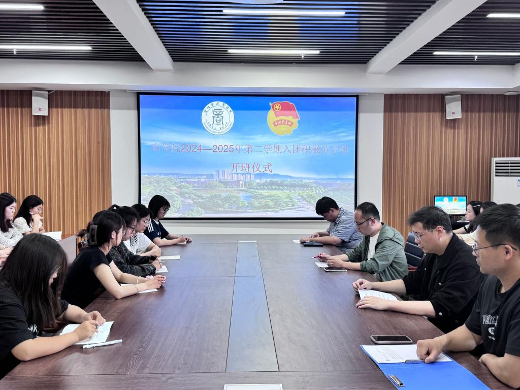 为深入学习贯彻习近平新时代中国特色社会主义思想,引导青年学子坚定理想信念,扣好入团“第一粒扣子”,5月14日下午,商学院在综合楼715会议室举行2024-2025学年第二学期入团积极分子培训班开班仪式。商学院学工干事花端阳、团总支书记乔梁、辅导员周力、刘一辰及43名入团积极分子共同参与此次活动。