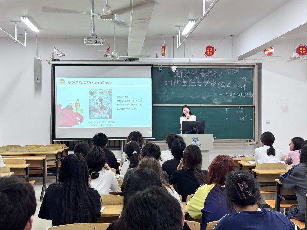 为引领青年学子深刻认识时代赋予的历史使命,增强责任感与使命感,5月15日晚,商学院在综合楼305教室举办“新时代青年的时代责任与使命担当”主题团课。本次团课由商学院辅导员姚梦娜主讲,43位入团积极分子参加。
