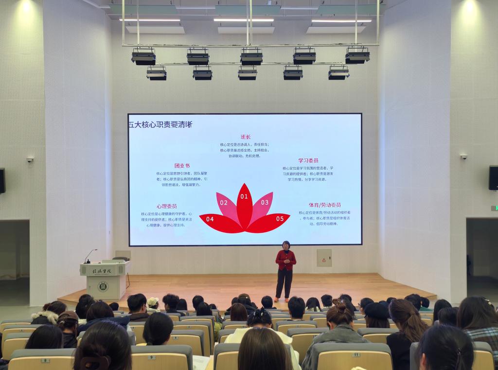 培训伊始,吴新静副院长聚焦学生干部核心角色定位,明确其本质是服务者而非管理者,引导大家跳出自我视角,将个人成长融入集体服务,实现工作动机从履职到担当的价值升华。随后,她从个人成长赋能、集体氛围营造、团队执行力提升三个方面,结合校园工作典型案例,系统阐释了学风建设对学生发展与学院建设的核心价值,细致拆解了学生干部工作需坚守的务实原则与科学方法,让大家对学风建设的重要性与实践路径有了更清晰的认知。