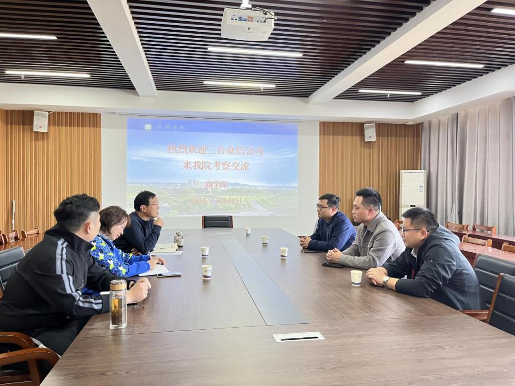 为进一步加强校企合作,2024年3月21日下午,河南三合众信企业服务有限公司董事长丁孝俊、信阳分公司负责人邹双忠等一行来校与我院进行了校企合作交流研讨。研讨会在综合楼715会议室举行。商学院院长刘玉来、副院长吴新静、会计教研室主任孙硕和教务员丁燕参加了座谈。