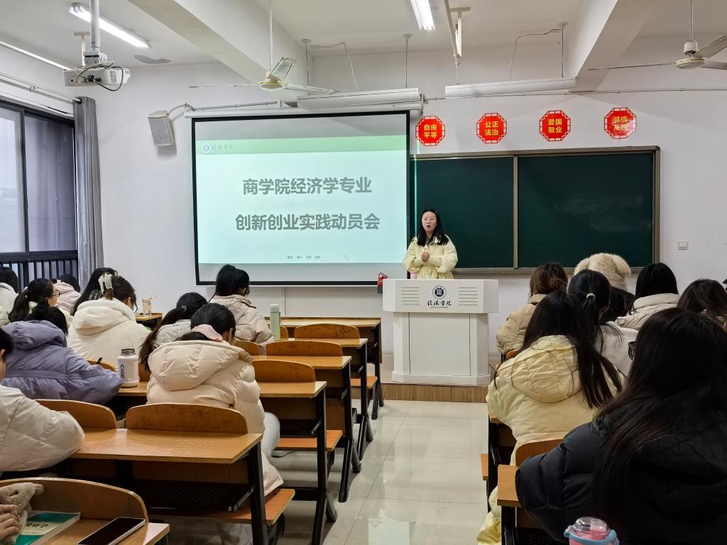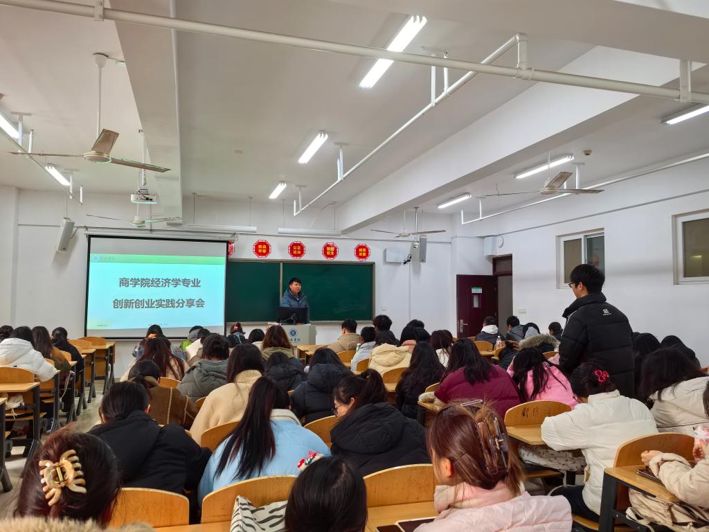 为激发学生创新思维和创业热情,帮助他们深入了解当前创业与就业环境,明确创业过程,根据教学计划安排,商学院于12月17日在综合楼502教室举行创新创业实践活动。此次活动,学院特别邀请了2015届经济学专业优秀校友赵培龙进行创新创业经验分享,2022级全体经济学专业学生积极参与。