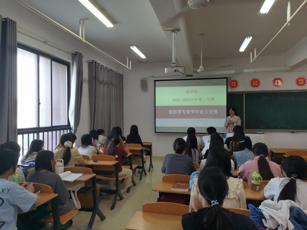 为深化人才培养体系改革,推动理论教学与实践创新深度融合,近日,商学院聚焦经济学专业教学计划,组织开展2024-2025学年第二学期经济学专业学年论文写作指导工作。经济学教研室方瑞老师对2022级经济学本科专业两个班级系统开展了写作指导。