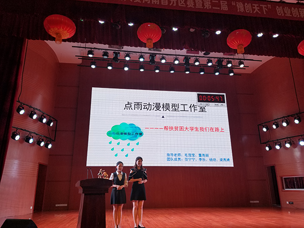 根据前期复赛结果,本届大赛共有20支创新创业团队入围现场决赛。经过一天的激烈角逐,商学院点雨动漫模型工作室获得创新组一等奖和奖金20000元,商学院正启代理记账团队获得创业组优胜奖。其中,点雨动漫模型工作室将代表信阳市参加河南省第二届“豫创天下”创业创新大赛创新组选拔赛。