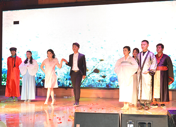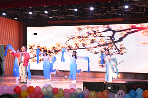 青春的交响绽放华丽的激情,校园的纯真挥洒最美的真挚。2017级新生班长们表演的舞蹈《班长来啦》拉开晚会的帷幕,酷炫搞笑的动作、成熟稳健的台风,瞬间点燃了全场观众热情的火焰;一曲充满童真的《星星不眨眼》更是让在场的师生在寒冬,感受到了爱与温暖;幽默诙谐而又引人深思的小品和相声《偶像团》、《常回家看看》、《五官新说》相继呈现,让同学们在捧腹大笑之余,更加懂得了爱与责任;王宝山教授的一曲《梨花颂》尽显京剧魅力,长安街237号乐队的男孩们演唱的歌曲《都选C》更是带动全场气氛,在优美的旋律中给师生们带来了视听盛宴;商学院青年教师和学生干部共同表演的时尚走秀《芳华》,俏皮可爱,引来无数同学的欢呼赞叹,将晚会推向高潮。最后,晚会在舞台剧《新起点、同奋进、共筑梦》中圆满落下帷幕。现场观众互动不断,“微信墙”滚动的词条传送着师生们美好的祝福。
