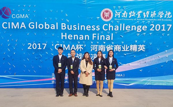 11月25日至26日,2017“CIMA杯”河南省商业精英挑战赛在河南牧业经济学院英才校区隆重举行。由商学院2016级经济学本科专业靳汉铮、徐佳慧、杜东昊、翟成辉4位同学组建的JDI团队,在院长刘建中的现场指导下,从全省20余所高校的206支团队中脱颖而出,成功入围34强半决赛,荣获优秀奖,指导老师刘磊荣获“优秀辅导老师”奖。